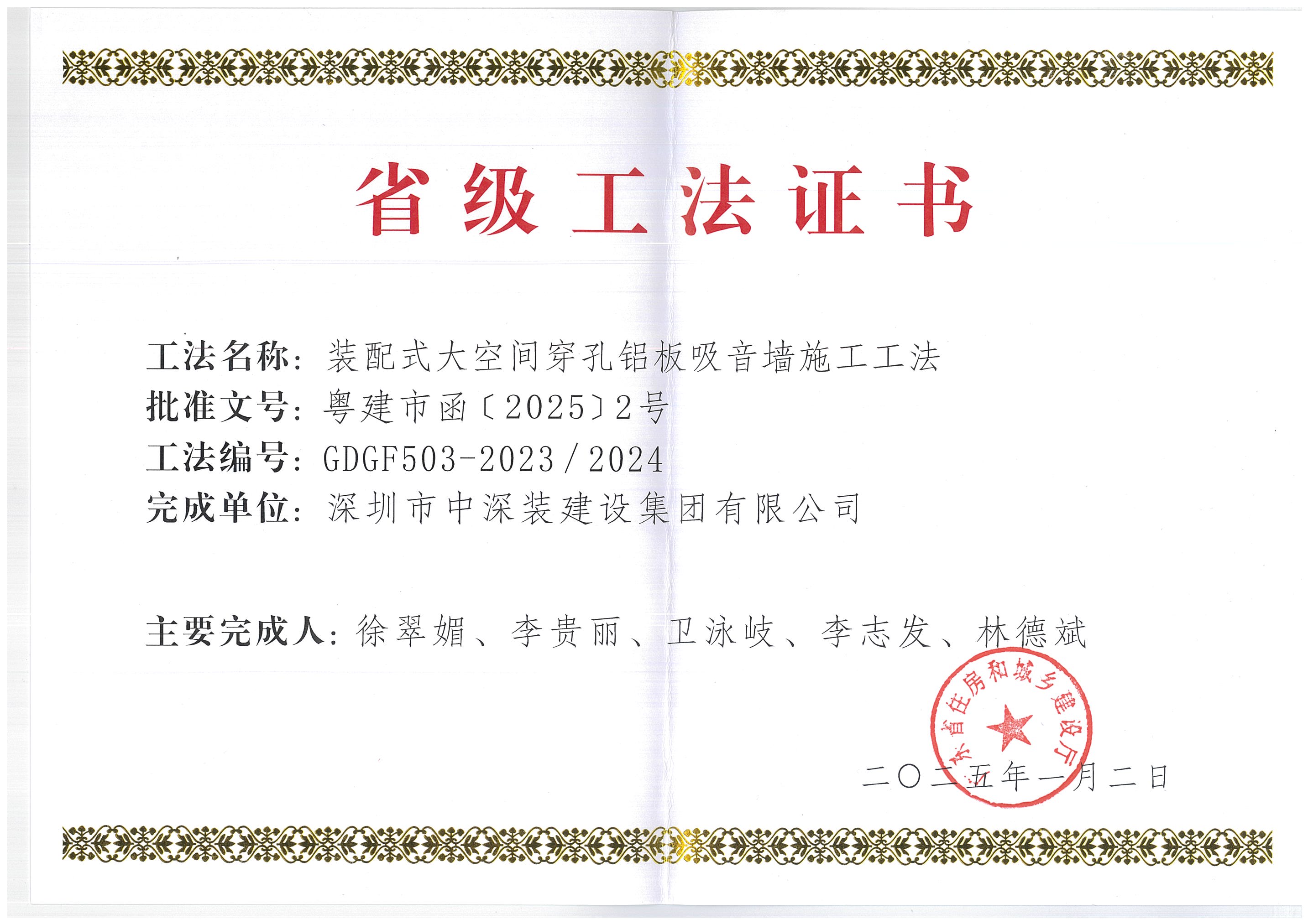 省级工法-装配式大空间穿孔铝板吸音墙施工工法