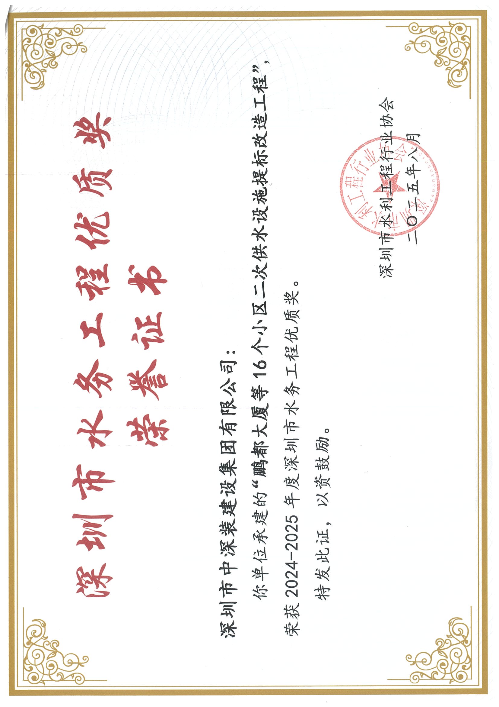 2024-2025年度深圳市水务工程优质奖-鹏都大厦等16个小区二次供水设施提标改造工程
