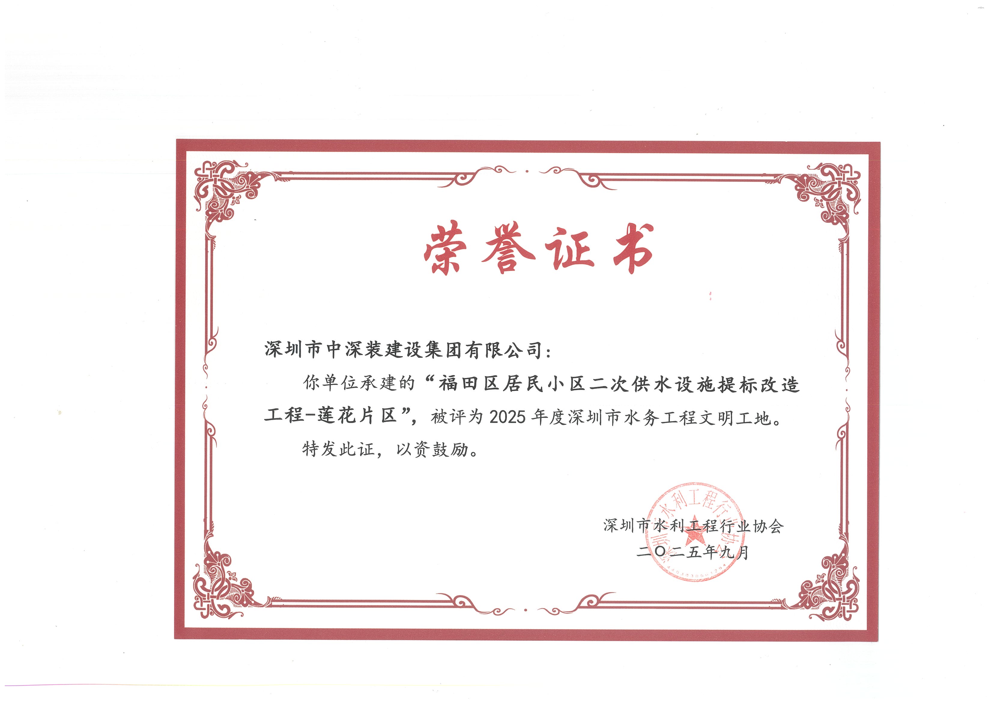 2025年度深圳市水务工程文明工地:福田区居民小区二次供水设施提标改造工程-莲花片区1